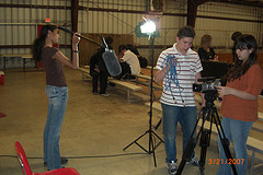 The Mobile Film School is THRILLED to produce our third digital media workshop, this time in partnership with Del Valle ISD, in the rural community of Del Valle, Texas. Fifteen high school students, ranging from freshman to seniors, participated in an 8-day, intensive documentary workshop from March 15-22, 2008. MFS faculty, staff and students clocked in roughly 99 hours of production time, which included presentations from industry professionals Jim Hart, Kate Dawson, Bill Crawford and Barry Coffing, as well as intensive instruction on the digital film and editing equipment. At the end of this course, the students produced a 9 minute short documentary film titled Till Death Do Us Part?, which focuses on the topic of marriage and divorce from their own personal experiences. Nearly 100 residents and friends turned up for the successful premiere screening, held at the Del Valle High School Auditorium on on Saturday, March 22. We want to make a special thanks to the Austin School of Film for providing post-production equipment, software, and support.